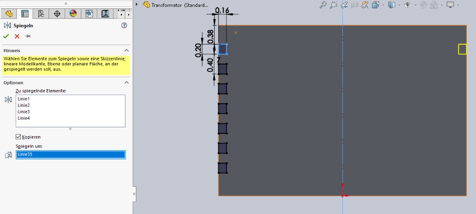 But when I select the first item of the pattern and select the Mirror sketch menu item, only the first item is being copied, not the pattern: