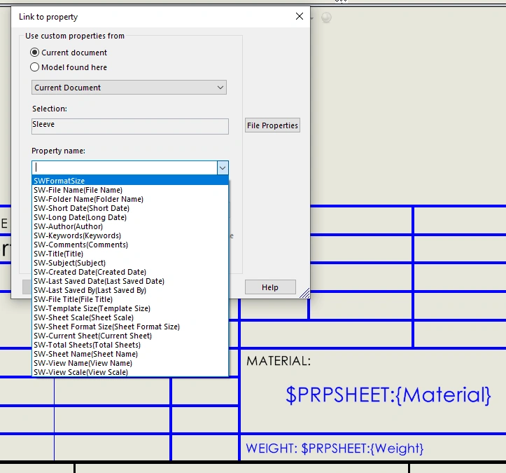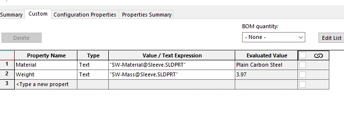 Why is it that I can't find material nor any part property actually such as weight in the list even though the part has the respective values set up in properties? Thxs all.