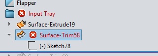 I can start a new trim surface feature using the sketch78 and the same surface to trim but can't edit the error feature?