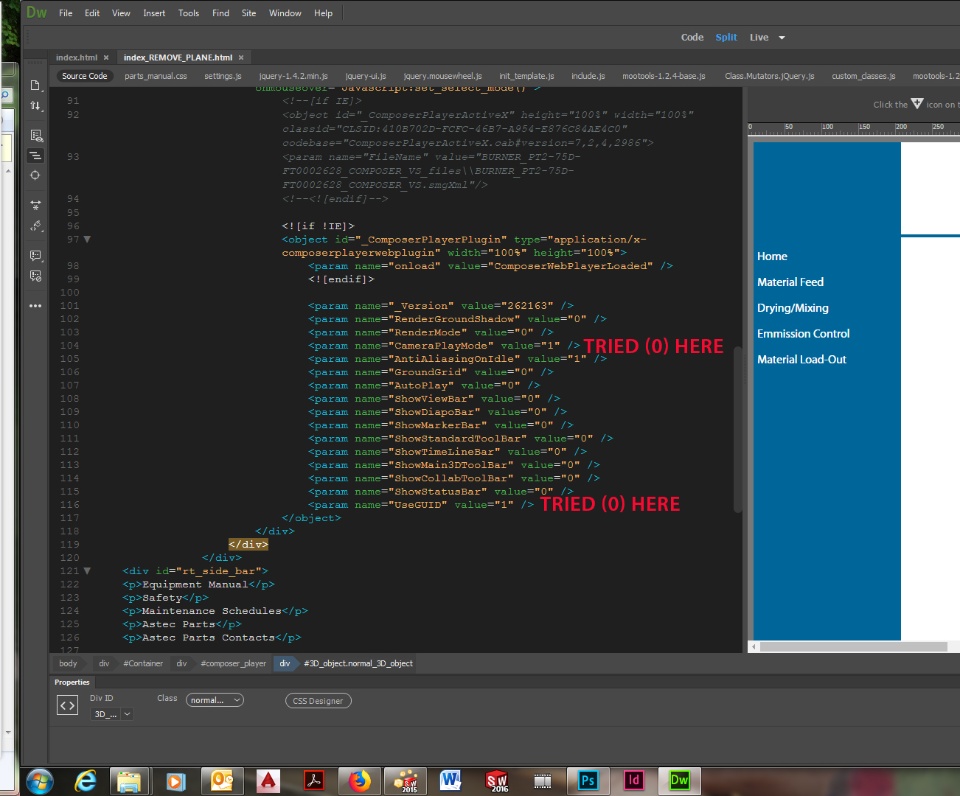 I'm creating a custom html page for the composer player. I can not get the Compass to NOT publish. I have unchecked the compass in the Composer tree and saved, and then published to html and it's still there. I have tried to cancel it out in the html code that embeds the player (see second screen shot) but no luck.