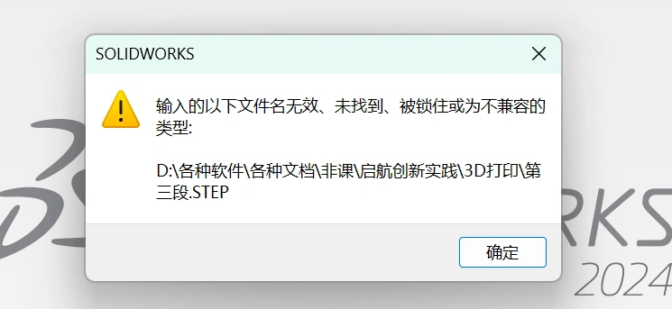 Why can't my SolidWorks open step. format files and prompt 'Invalid file name, cannot be found, locked, or incompatible type'? Is there any solution available