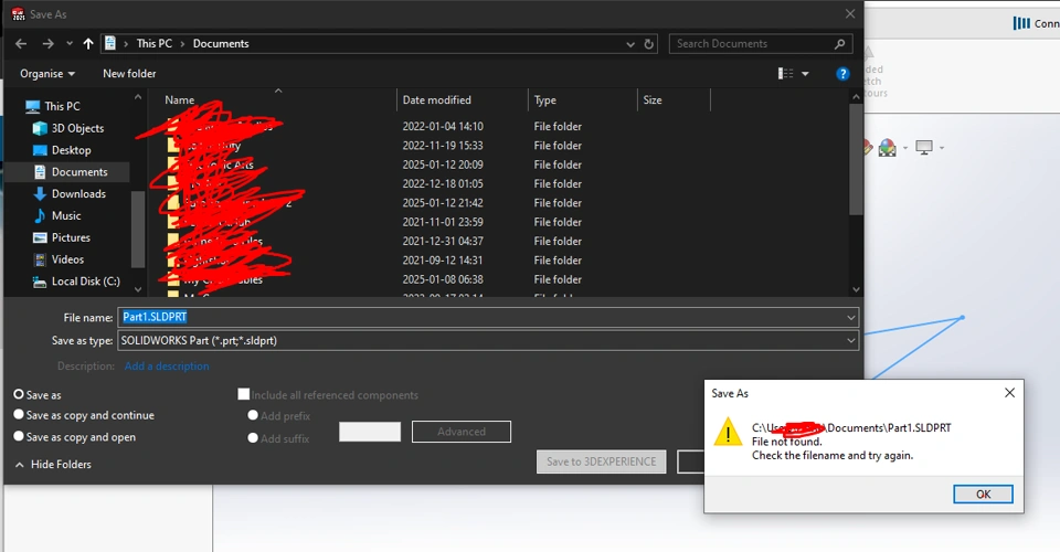 For some reason i cant save any files, cant save to this pc or to 3dexperience
