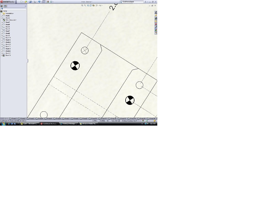 This is my first opportunity to use center marks and dowelpin symbols since switching to SW09. I created an auxiliary viewand tried to insert center marks and dowel pin symbols but theyaren't aligned with the view. They aren't aligned to either theparent view or the aux. view. It's been a while since I used eitherin SW08, but I seem to remember that they were aligned with theaux. view. Is that correct? The dowel pin symbol doesn't even havean angle property. I seem to recall that with center marks I couldenter an angle property to align it with the aux. view. I don'tremember if I entered the angle of the view and just zero to alignit. These insert at some oddball angle. Anyway, is there a way toalign these with the aux. view?SolidworksDrawings And Detailing