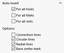 I am drafting a flanged part with some circular hole pattern. When I am inserting Centre mark using manual option and selecting Radial Lines and circular lines option then Radial lines and circular line passing through all holes is shown. But when I am using the Auto Insert option and Selecting Radial lines and circular lines option then I am not getting the Radial lines and circular line in the drawing view. Attached is the image files. Suggestion are welcomed..