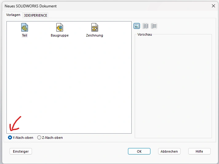 how can i change the standard for the alignment of the coordinate system? Everytime I want to open a part I need to change the alignment to "Y-Nach-oben".
