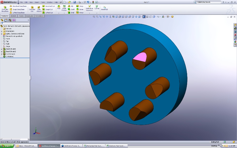 I'd like to pattern a pin with a cut (pink surf) but NOT have the surf cut rotate with the pattern.