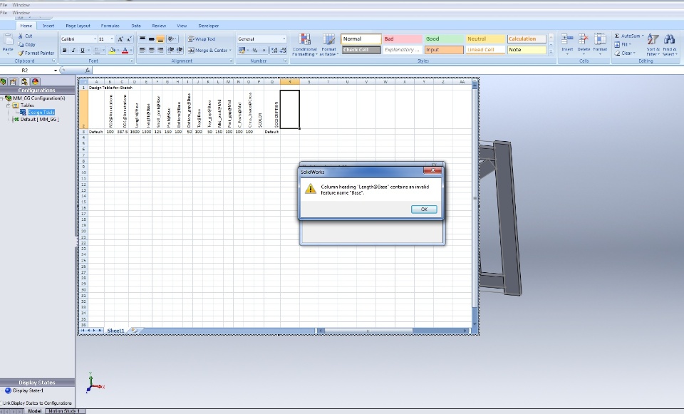 I am having problems trying to update a design table. The spreadsheet is linked to a part which is part of an assembly. However when I go into the assembly and try to edit the design table I get that error. Has anyone come across this?