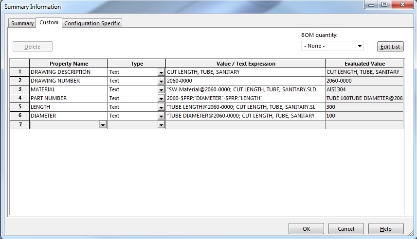 Example: The evaluated value for PART NUMBER should read: 2060-100-300