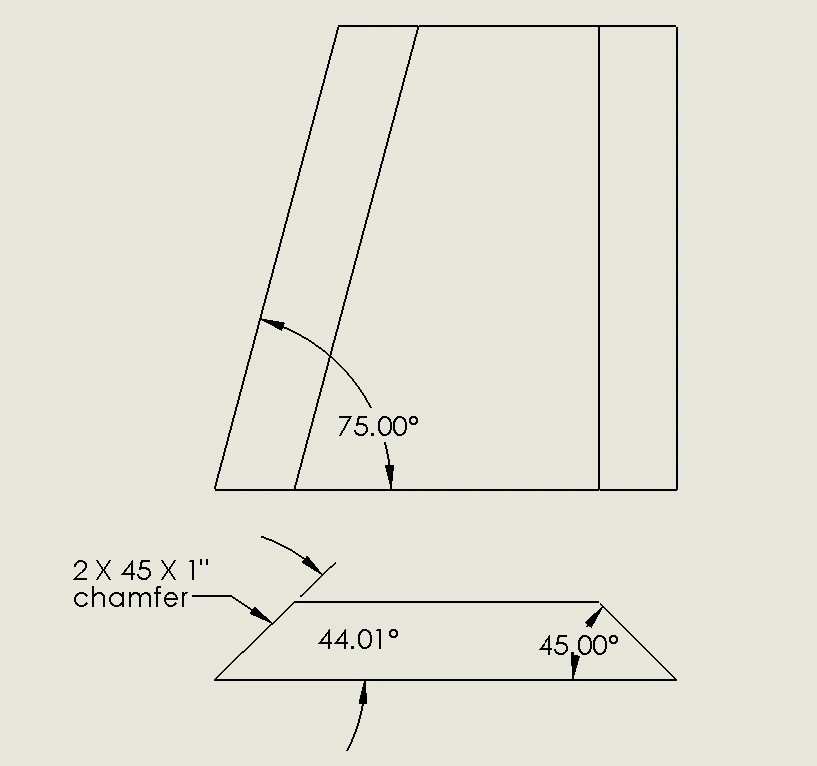 Simple compound cut 45 degree chamfer (bevel) and 75 degree miter.