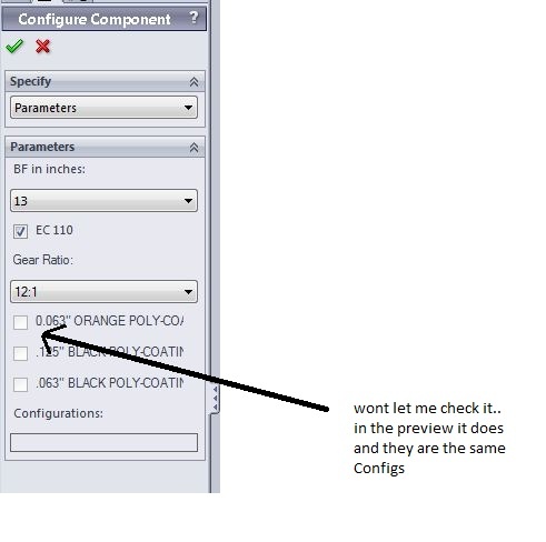 But when I put it into an assembly.......it doesnt let me check the same boxes as in the preview??
