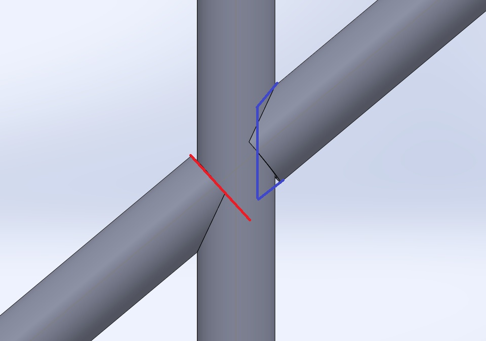 I have a question for you guys... I'm drawing a hand rail for a set of stairs and I use the split method to cut short for coping. Is there any way to get the end of the pipe to be vertical (in blue), instead of running parallel with the line (in red) WITHOUT having to create a plane at the end of every single pipe? You'd think after all these years routing tubing would be a little more intuitive. I was hoping aligning the sketch in weldment would help but of course it just rotates it about the line