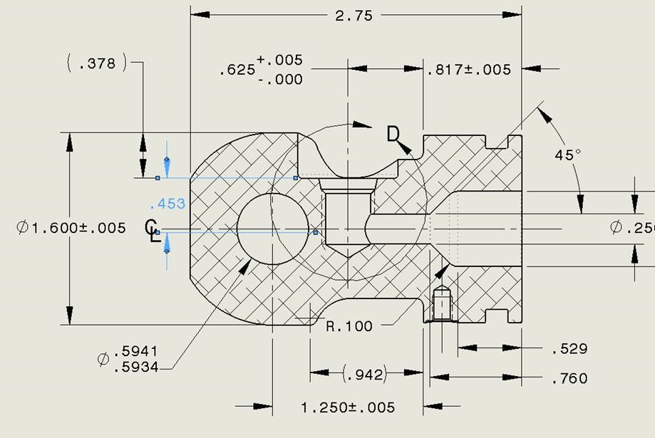 The dimension (highlighted) is correct. The display is not. I tried re-building (CTRL+Q) for both the drawing and the part, flipping the section view in the drawing, hiding/showing, and completely deleting the threads and starting over. And yet, this is the best I can apparently get... [SW2014, SP4.0, Win7x64]