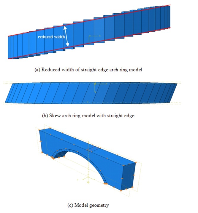 I have recently started using SolidWorks to speed up the time it takes me to build a skewed arch in Abaqus. I have attached a drawing showing how I build my skewed arch in Abaqus (the straight edge model - part (b) in the drawing). This took a lot of time, as each of the blocks had to be created individually given that each block is shaped slightly differently. Therefore I was looking for your opinion on the fastest way to build this model in SolidWorks. So far I think my best bet is to create a 2D sketch of one of the blocks, and then perform a swept boss on it at the desired angle of skew. However, this doesnt seem to be very fast, as I think I have to perform the swept boss for every single block individually, instead of sweeping them all in one go. Does anyone have any better ideas on how to build this model?