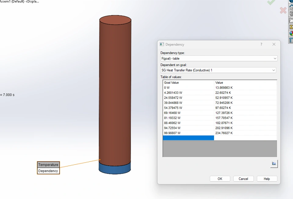 The cold tip temperature depends on the thermal interaction with the middle surface of the assembly. I’ve defined this dependency using a table (see below).