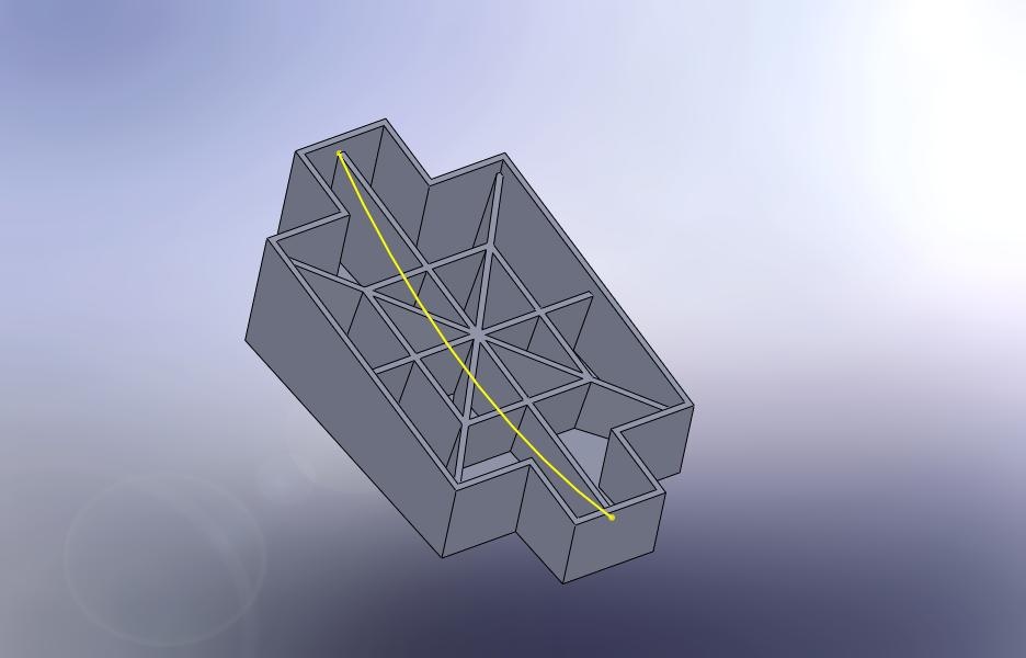 How can I go about "scooping" out the rib pattern in order todecrease the amount of material used? I would like the rib patternto be cut with the profile shown in yellow. Can this be donewithout affecting the surrounding box? Thank you for any help youcan provide.