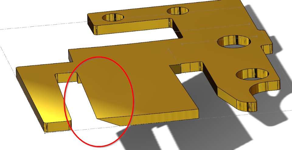 In the 3D model everything seems fine but when i try to flatten it the right side is created fine but the left side transforms into a weird chamfer on my plate as below.