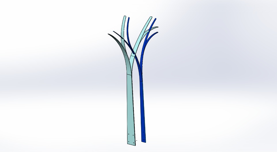 The current parts were each created as sheet metal extrusions from a single line sketch. Because they need to be flattened, they were modeled indvidually and then mated into assemblies.