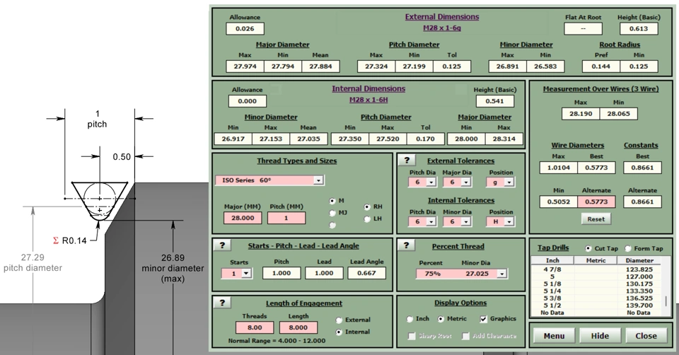 I'm curious what others are doing for accurate design profiles for threads, internal and external. I know some use the SW thread tool, I'm not asking about this, I'm aware of it and know how to modify the profiles and use it, not what I'm after.