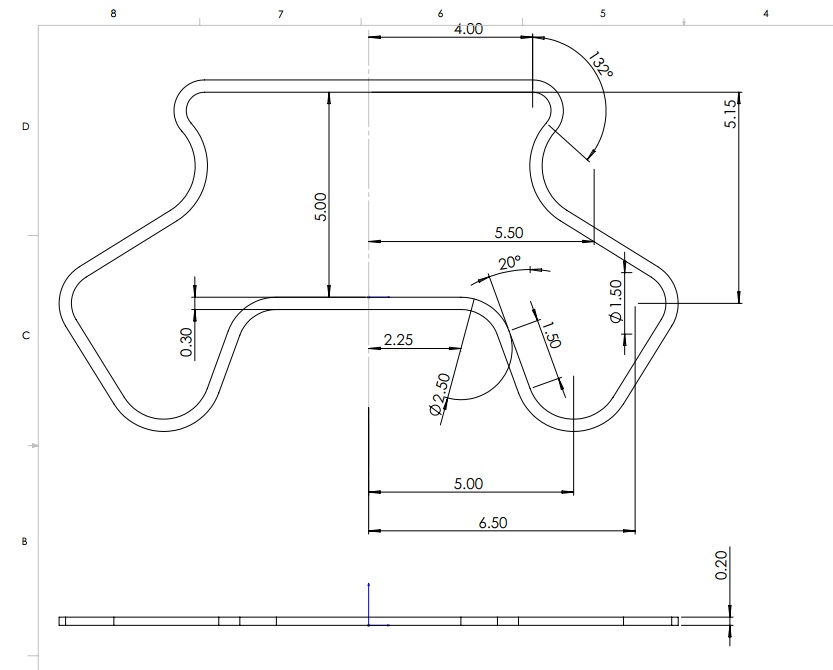 My goal is to design the below part in Solidworks. I understand that this part requires extensive use of relations. For example, I can see several pairs of parallel lines. I foresee myself creating several parallel line relations. That's basically the extent of what I know right now.