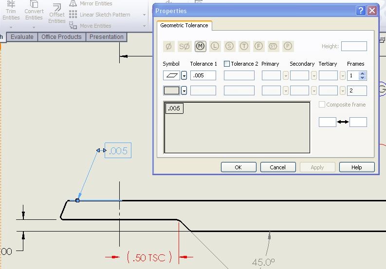 The second issue with the drawing is a geometric tolerance for a surface no longer shows the surface symbol. When I look at properties, it's there, but it no longer shows on the drawing. I have a previous revision of this drawing saved as a PDF and these problems don't exist. Might there be a problem with SP3 I haven't read about? Anyone?
