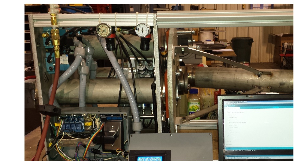 Below is more information about the 4-Way Swivel Diverter that I modeled and machined from scratch. This diverter is used in various pneumatic conveying systems. Product flow goes into the single pipe, and out through one of the four pipes at the opposite end. The plate can be rotated (clockwise direction only) by a patent pending drive process