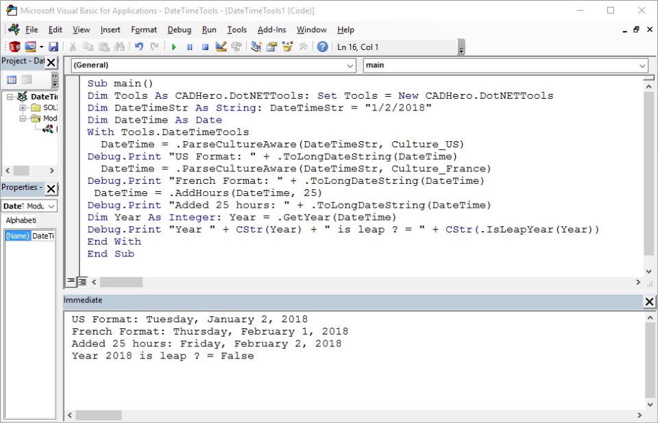 2. Working with Date and Time has never been this easy. You can even parse string dates into a culture aware VBA Date object.