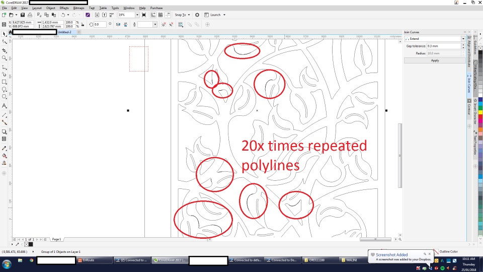 We cant find any problems inside the Solidworks drawing making it hard to pin point what to change to get a file that doesn't alter when opening in other programs. We have created new files from scratch and still having the problem. I have attached DXF file in question and a few screen shots of the results of importing into Coral Draw and Enroute.