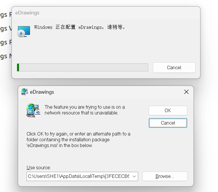 After download the (eDrawingsFullAllX64),when I installing,a prompt popped up asking me to choose a called eDrawing.msi folder,but I can't find this folder,there is only eDrawingsFullAllX64.exe which do not contain the .msi format folder.