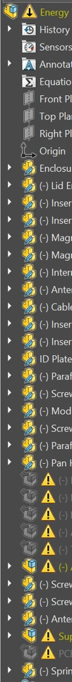 Here is an example image. The assembly was created in SolidWorks. Later, I added 3DExperience PARTS to the BOM using the 3DExperience Engineering Release Widget (XEN). These represent glues and other things that don't have CAD but must be in the BOM that goes to our ERP.