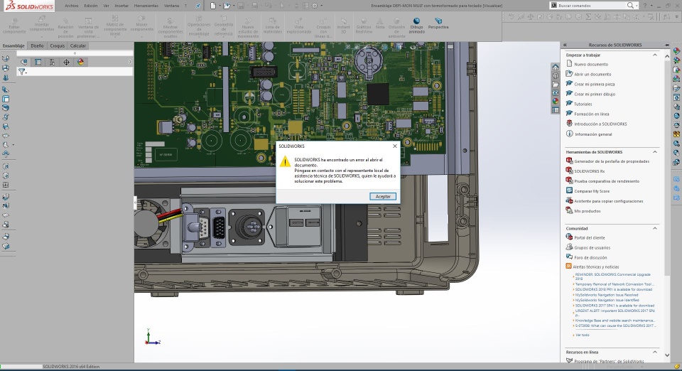 I'm working on Windows 10, 8gb RAM, I7 processor, and a (modest) GeForce Nvidia 610 (I KNOW that is not in recommended hardware). It could be a memory problem? I used to open more bigger assemblies and that's the first time this error comes up.