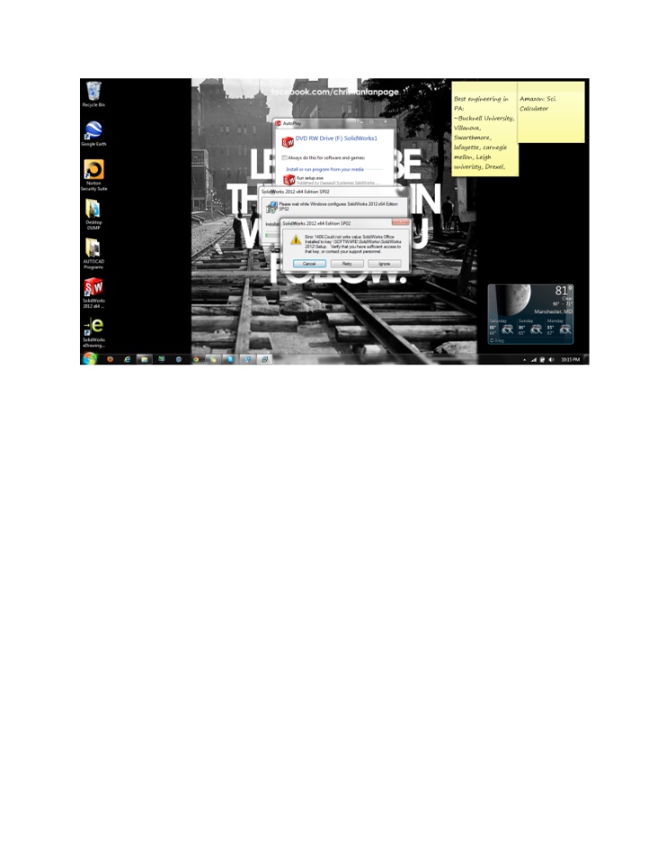 Note: For some reason my solid works icon is that red box. I am unsure if that is how it looks like or is an error on my computer.
