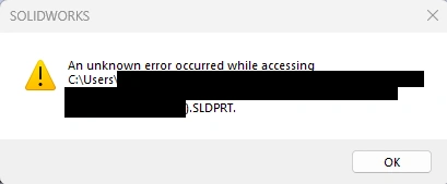 Running Solidworks professional 2025, files saved localy.