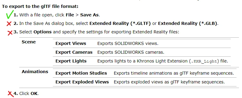 Hi folks, I read here https://help.solidworks.com/2021/english/SolidWorks/sldworks/t_export_using_extended_reality.htm?format=P&value=