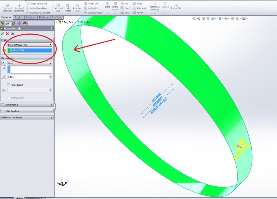 i want to extrude the letter. If i mentioned the surface means the extrude taking another side . I want opposite side from the sketch. There is no filp option to filp the direction.