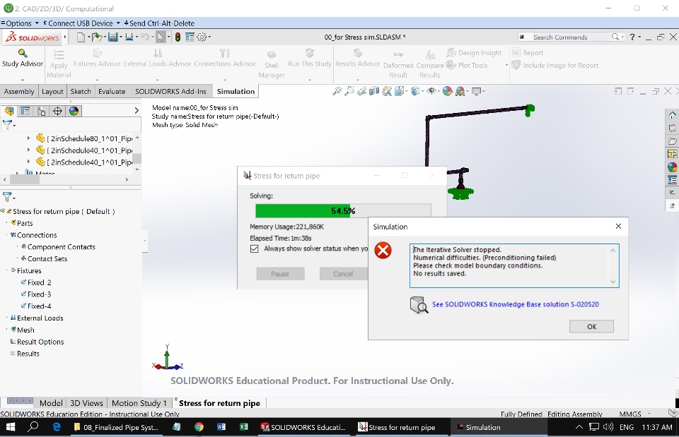 Please help if there are any ways I can solve this FEA study for my pipe stress analysis.