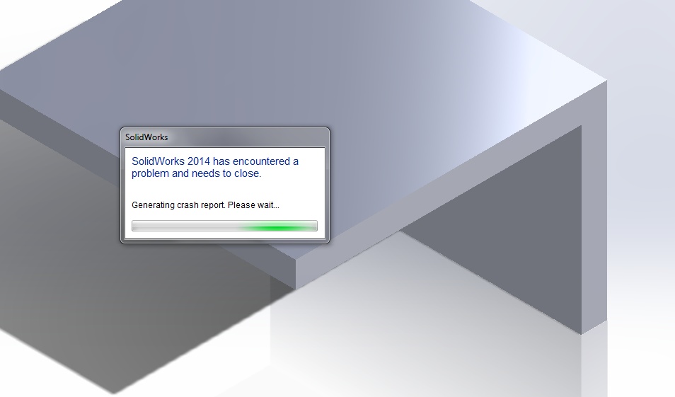 I'm a manufacturing engineering student and just received my CSWA cert through the school. I landed a job with a company locally and all they use is Solidworks 2014.I was never really exposed to importing parts often in class but I need to do it frequently with work. I'm having an issue with any step file I import from our vendors will crash during feature recognition. It will pass import diagnostics without issue. Feature works will prompt and I click yes, then it will begin working and approximately 20-30 seconds later I get "Solidworks 2014 has encountered a problem and needs to close". I've included a screenshot of the message when I was testing with a simple piece of angle iron. Also when the FeatureWorks toolbar pops up on the left I get the same message if I click anywhere but the green check mark.