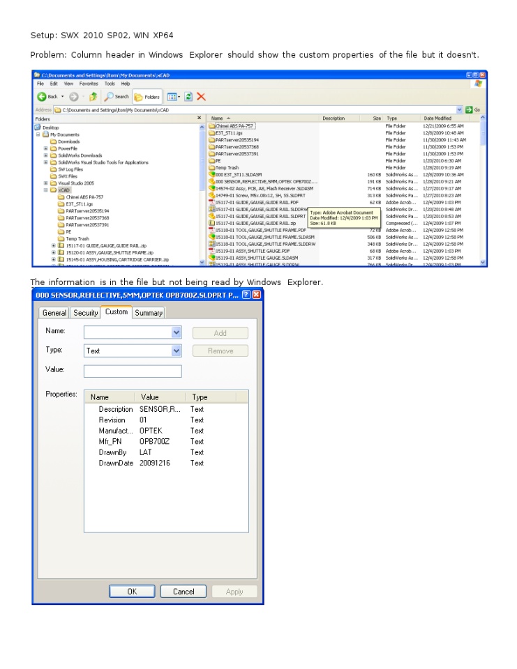 Problem: Column header in Windows Explorer should show the custom properties of the file but it doesn't.