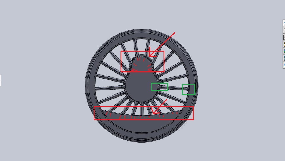 Does anyone have a trick for making these fillets based on the ID surfaces and not the spokes? My issue is I want to be able to adjust the number of spokes and several other dimensions for making a casting, and if I start making individual fillet features, making a change such as the number of spokes will add several hours to each configuration.