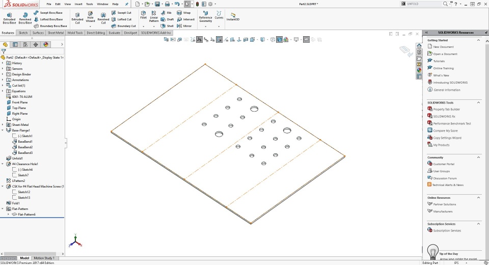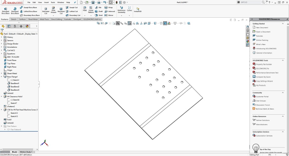 I am getting the incorrect flat pattern for the attached sheet metal part. I am using sw2017 sp5.