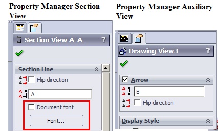 I can easily change the font size/style of Section arrow text/ View label text for a particular view by de-selecting the option “Use Document Font” while creating section views.
