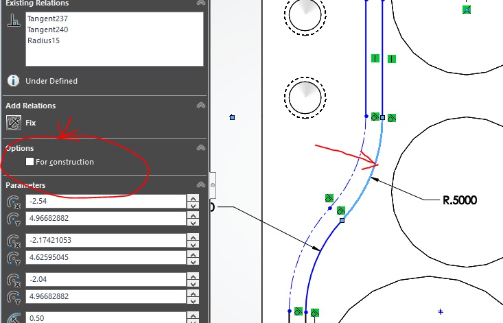 When I select one line in a sketch as shown here I have the option to convert it to a construction line.