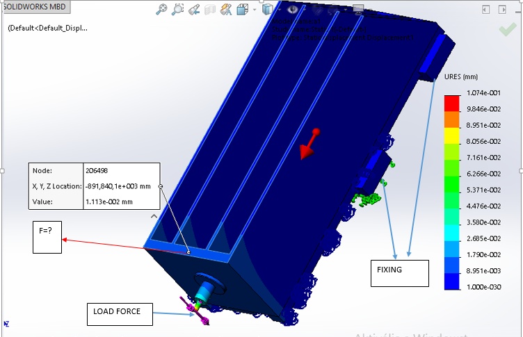 I have a modell, that you can see in the picture. I would like to calculate the stiffness of the modell on the point of the probe result (where i viewed the displacement). I want to calculate stiffness with this formule: k=F/x, where x is the displacement: 1,113e-002 mm. How can i get F?