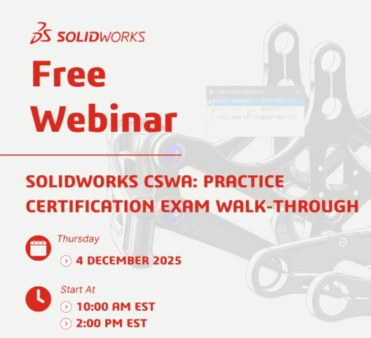 Students can attend a free webinar by the SOLIDWORKS Education team on the SOLIDWORKS CSWA Practice Exam Walk-Through to get free exam vouchers. You can register for the webinar here. Additionally, students can get more free exams through their school or university. More details can be found here.