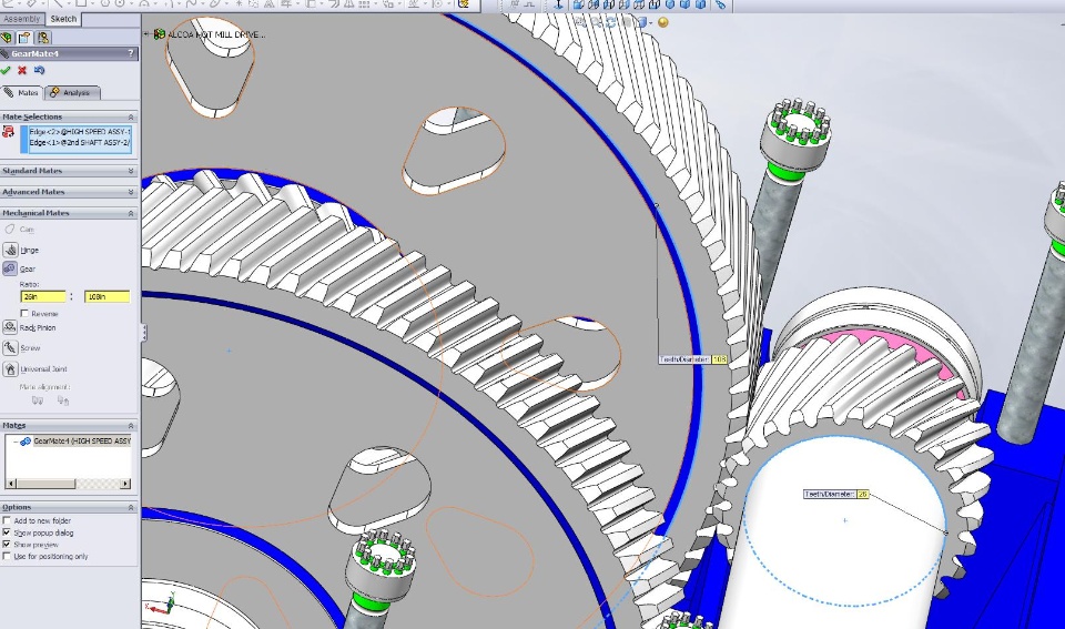 Hi, I am trying to make an assembly of two helical gears. ButI cannot use the gear mates. Can anyone provide me some tips,tutorials to make a gear assembly. Thank you very much.