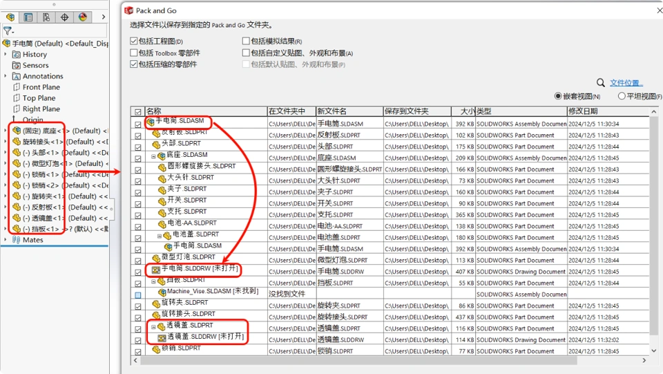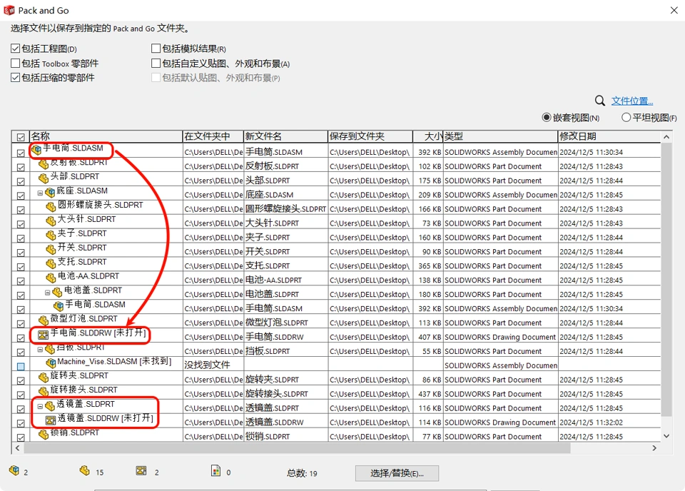 Why are assembly and assembly drawings not together in the Pack and Go interface? The parts and the drawings of the parts will be together.