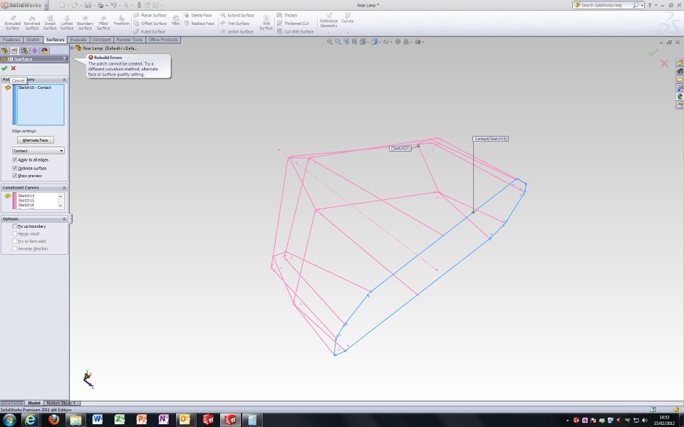 im trying to reverse engineer a motorcycle rear light unit. i am using a base sketch and multiple constraint curves on planes running perpendicular to the base sketch so what i basically have is a shell of the light lens.