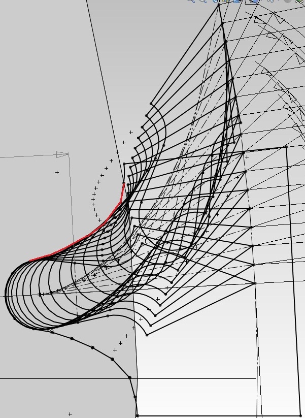 -Then I rotated the tooth around the center of the spur gear at the increment that it would rotate if the pinion rotated that 5 degrees.
