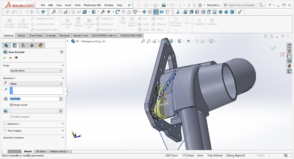 As we all know, you can boss extrude in many ways, blind, through all, Up to next, Up To Vertex, Up to surface and so forth. But what I'd like to know is whether or not it is at all possible to extrude up to another plane?