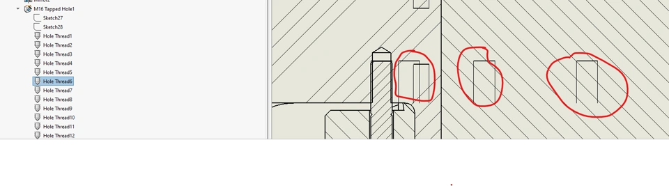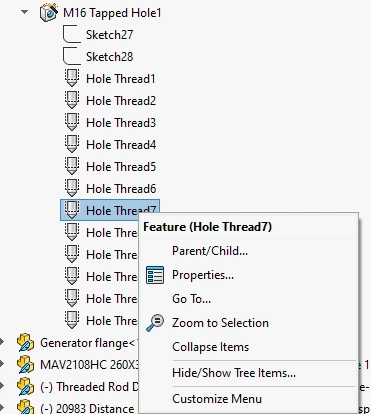 I have imported the model items (thread) into the draving view (assembly). How can I hide redundant thread features?