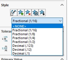 I have the below dimension styles in our drawing template and saved as external style files, but I want it to default to "Fractional (1/16)" when placing new dimensions. All of our shop drawings are in Fractional rounded to nearest 1/16" unless we deem it necessary for a different precision for various reasons.